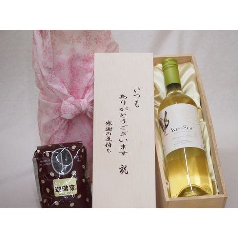 贈り物いつもありがとう木箱と珈琲豆セットオススメ珈琲豆(特注ブレンド200g)デル・スール ソーヴィニヨン・ブラン白ワイン (チリ) 750ml