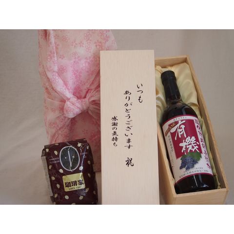 贈り物いつもありがとう木箱と珈琲豆セットオススメ珈琲豆(特注ブレンド200g)酸化防止剤無添加有機あずさワイン赤 (長野県) 720ml