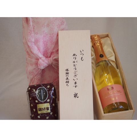 贈り物いつもありがとう木箱と珈琲豆セットオススメ珈琲豆(特注ブレンド200g)ノンアルコールワインカールユングスパークリングピーチやや甘口 (ドイツ) 750ml