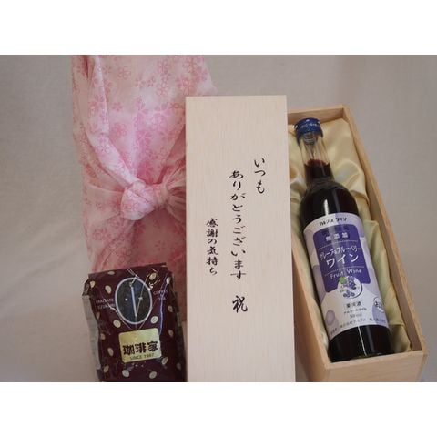 贈り物いつもありがとう木箱と珈琲豆セットオススメ珈琲豆(特注ブレンド200g)酸化防止剤無添加グレープ&ブルーベリーワイン甘口 (長野県) 500ml