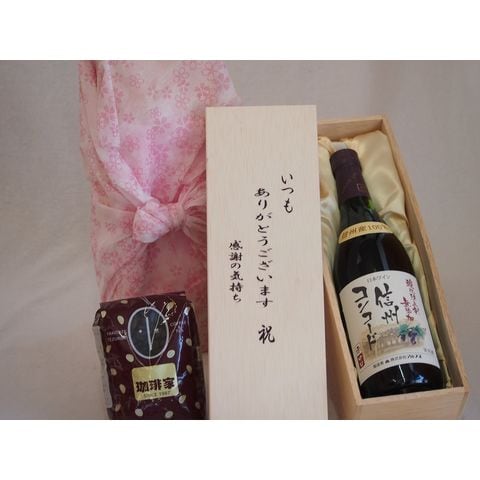 贈り物いつもありがとう木箱と珈琲豆セットオススメ珈琲豆(特注ブレンド200g)酸化「防止剤無添加信州コンコード中口 (長野県) 720ml
