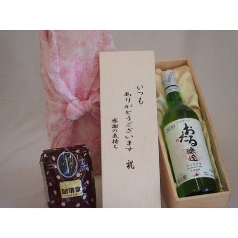 贈り物いつもありがとう木箱と珈琲豆セットオススメ珈琲豆(特注ブレンド200g)日本産葡萄100%使用おたる醸造ナイヤガラ白ワインやや甘口 (北海道) 750ml