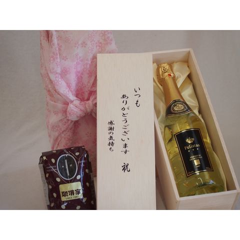贈り物いつもありがとう木箱と珈琲豆セットオススメ珈琲豆(特注ブレンド200g)フェリスタスプレミアムスパークリングワイン (ドイツ) 750ml
