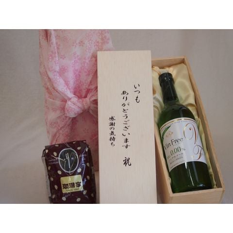 贈り物いつもありがとう木箱と珈琲豆セットオススメ珈琲豆(特注ブレンド200g)ノンアルコールワインヴァンフリー白 (長野県) 500ml