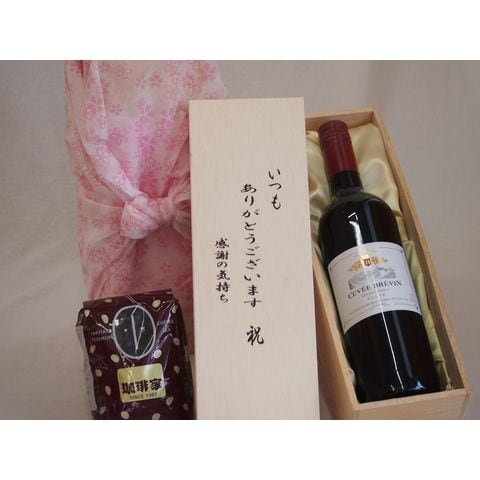 贈り物いつもありがとう木箱と珈琲豆セットオススメ珈琲豆(特注ブレンド200g)キュヴェ・ブレヴァン赤ワインミディアム (フランス) 750ml