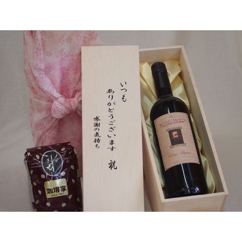 贈り物いつもありがとう木箱と珈琲豆セットオススメ珈琲豆(特注ブレンド200g)ミケランジェロモンテプチャーノ赤ワイン (イタリア) 750ml