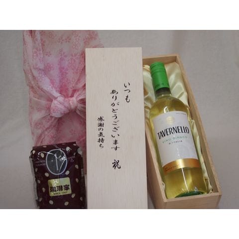 贈り物いつもありがとう木箱と珈琲豆セットオススメ珈琲豆(特注ブレンド200g)タヴェルネッロロッソビアンコイタリア白ワインやや辛口 750ml