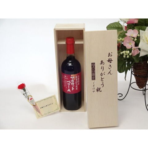 母の日 ギフトセット ワインセット お母さんありがとう木箱セット(シャンモリワイン 山梨県産葡萄100%使用 マスカット・ベリーA 720ml(山梨県))母の日カード お母さんありがとうカーネイション