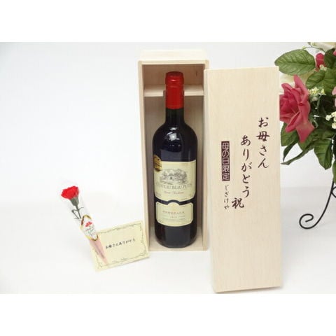 母の日 ギフトセット ワインセット お母さんありがとう木箱セット(金賞ワイン 赤ワイン)母の日カード お母さんありがとうカーネイション