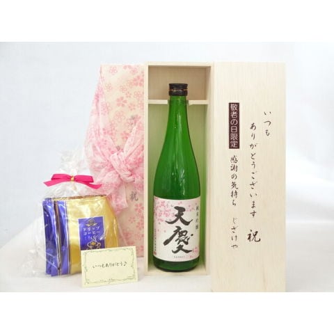 じいじの敬老の日 ギフトセット 日本酒セット いつもありがとうございます感謝の気持ち木箱セット 挽き立て珈琲(ドリップパック5パック)(早川酒造部 天慶 純米吟醸 720ml(三重県)) メッセージカード付