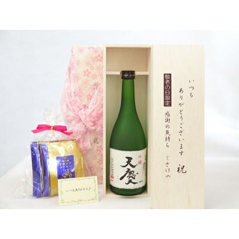 じいじの敬老の日 ギフトセット 日本酒セット いつもありがとうございます感謝の気持ち木箱セット 挽き立て珈琲(ドリップパック5パック)(早川酒造部 天慶 吟醸 720ml(三重県)) メッセージカード付