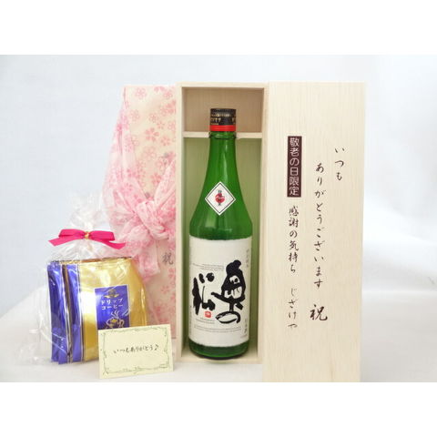 じいじの敬老の日 ギフトセット 日本酒セット いつもありがとうございます感謝の気持ち木箱セット 挽き立て珈琲(ドリップパック5パック)( 奥の松酒造 特別純米酒 奥の松 720ml(福島県) ) メッセージカード付