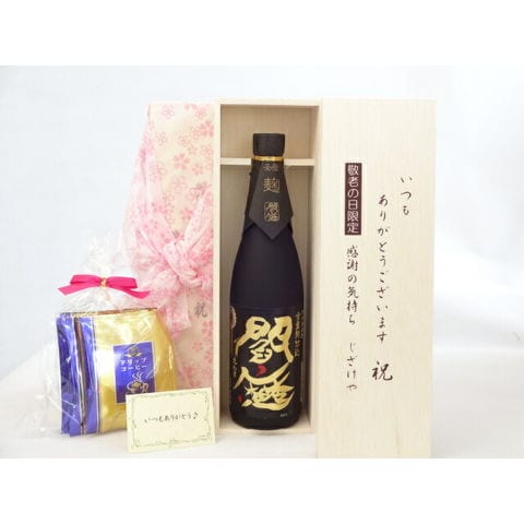 じいじの敬老の日 ギフトセット 焼酎セット いつもありがとうございます感謝の気持ち木箱セット 挽き立て珈琲(ドリップパック5パック)( 老松酒造 麦焼酎 黒麹・全量麹 麦焼酎 閻魔 25°720ml(大分県) ) メッセージカード付