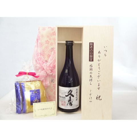 じいじの敬老の日 ギフトセット 焼酎セット いつもありがとうございます感謝の気持ち木箱セット 挽き立て珈琲(ドリップパック5パック)( 宮崎本店 久寿 麦焼酎 25度 720ml (三重県) ) メッセージカード付