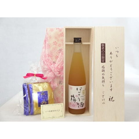 じいじの敬老の日 ギフトセット 梅酒セット いつもありがとうございます感謝の気持ち木箱セット 挽き立て珈琲(ドリップパック5パック)( 中埜酒造 にごり梅酒 500ml(愛知県) ) メッセージカード付