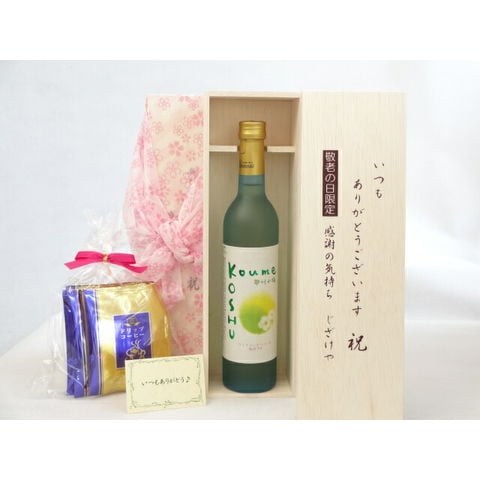 じいじの敬老の日 ギフトセット 梅酒セット いつもありがとうございます感謝の気持ち木箱セット 挽き立て珈琲(ドリップパック5パック)( ワイナリーがこだわった梅酒 小梅の中では、最高峰といわれる甲州小梅 500ml(山梨県) ) メッセージカード付 お歳