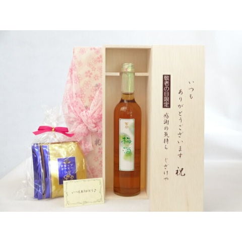 じいじの敬老の日 ギフトセット 梅酒セット いつもありがとうございます感謝の気持ち木箱セット 挽き立て珈琲(ドリップパック5パック)( 南高梅を漬け熟成した梅酒 500ml井上酒造 百助(大分県) ) メッセージカード付