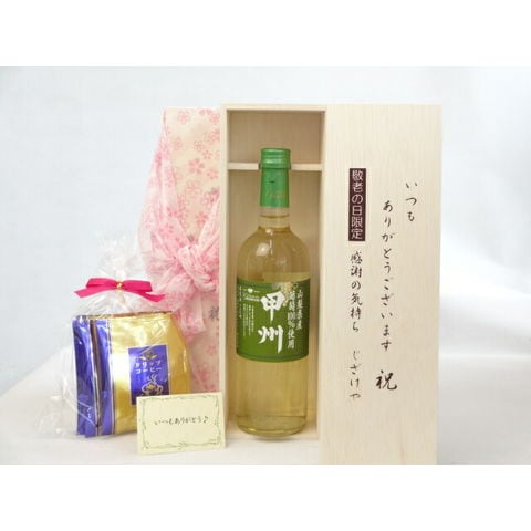 じいじの敬老の日 ギフトセット ワインセット いつもありがとうございます感謝の気持ち木箱セット 挽き立て珈琲(ドリップパック5パック)( シャンモリワイン 山梨県産葡萄100%使用 甲州 720ml 盛田甲州ワイナリー(山梨県) ) メッセージカード付