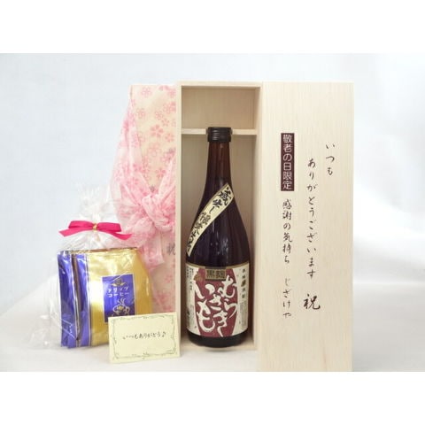 じいじの敬老の日 ギフトセット 焼酎セット いつもありがとうございます感謝の気持ち木箱セット 挽き立て珈琲(ドリップパック5パック)( 堤酒造 黒麹 むらさきいも 25度 720ml(熊本県) ) メッセージカード付