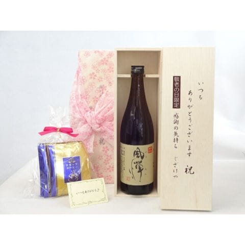 じいじの敬老の日 ギフトセット 焼酎セット いつもありがとうございます感謝の気持ち木箱セット 挽き立て珈琲(ドリップパック5パック)( 吹上焼酎 本格焼酎 風憚 25度 720ml(鹿児島県)) メッセージカード付