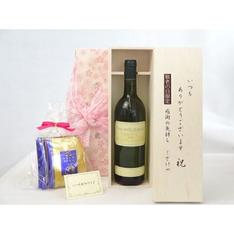 じいじの敬老の日 ギフトセット ワインセット いつもありがとうございます感謝の気持ち木箱セット 挽き立て珈琲(ドリップパック5パック)( バロン・ド・レストリーレ・ブラン白(フランス)750ml ) メッセージカード付