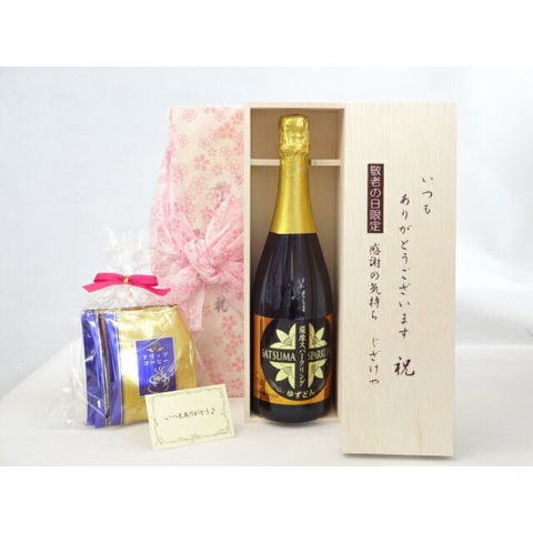 じいじの敬老の日 ギフトセット ワインセット いつもありがとうございます感謝の気持ち木箱セット 挽き立て珈琲(ドリップパック5パック)( 薩摩スパークリング ゆずどん 750ml(鹿児島県))メッセージカード付