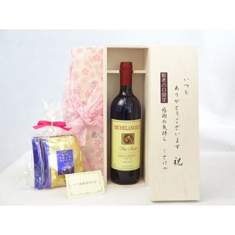 じいじの敬老の日 ギフトセット ワインセット いつもありがとうございます感謝の気持ち木箱セット 挽き立て珈琲(ドリップパック5パック)( ミケランジェロ 赤ワイン(イタリア)750ml)メッセージカード付