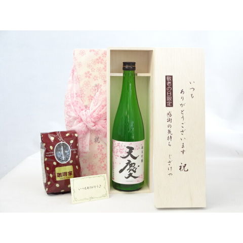 じいじの敬老の日 ギフトセット 日本酒セット いつもありがとうございます感謝の気持ち木箱セット+オススメ珈琲豆(特注ブレンド200g)(早川酒造部 天慶 純米吟醸 720ml(三重県)) メッセージカード付
