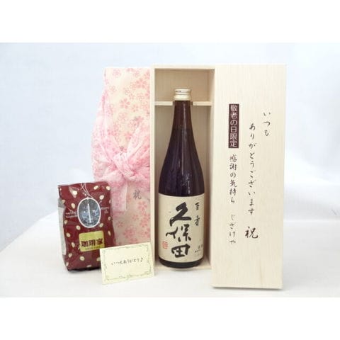 じいじの敬老の日 ギフトセット 日本酒セット いつもありがとうございます感謝の気持ち木箱セット+オススメ珈琲豆(特注ブレンド200g)( 朝日酒造 久保田 百寿 本醸造 720ml(新潟県 ) ) メッセージカード付
