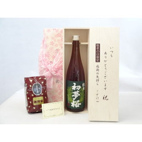 じいじの敬老の日 ギフトセット 日本酒セット いつもありがとうございます感謝の気持ち木箱セット+オススメ珈琲豆(特注ブレンド200g)( 金しゃち酒造 初夢桜 純米 720ml [愛知県] ) メッセージカード付