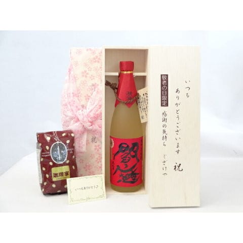 じいじの敬老の日 ギフトセット 焼酎セット いつもありがとうございます感謝の気持ち木箱セット+オススメ珈琲豆(特注ブレンド200g)( 老松酒造 麦焼酎 閻魔 25°720ml(大分県) ) メッセージカード付