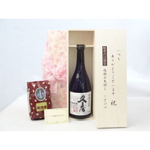 じいじの敬老の日 ギフトセット 焼酎セット いつもありがとうございます感謝の気持ち木箱セット+オススメ珈琲豆(特注ブレンド200g)( 宮崎本店 久寿 麦焼酎 25度 720ml (三重県) ) メッセージカード付