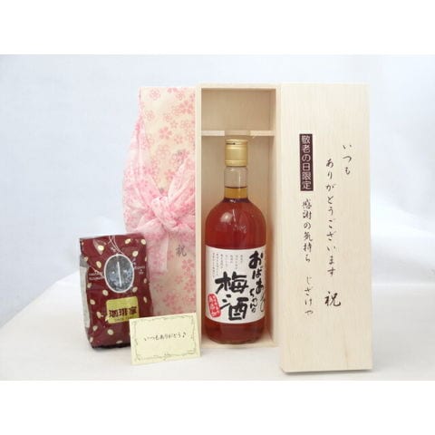 じいじの敬老の日 ギフトセット 梅酒セット いつもありがとうございます感謝の気持ち木箱セット+オススメ珈琲豆(特注ブレンド200g)( 中埜酒造 おばあちゃんの梅酒 720ml(愛知県) ) メッセージカード付