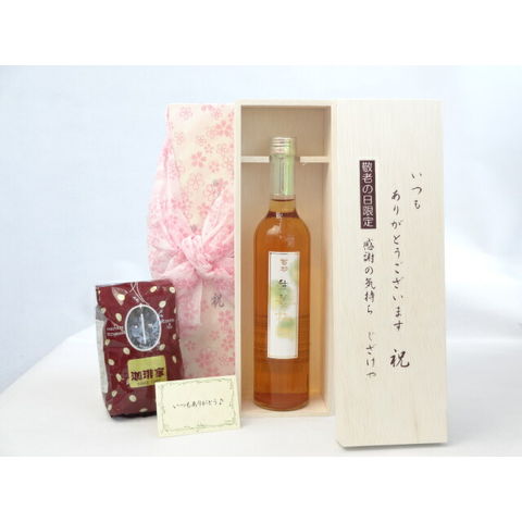 じいじの敬老の日 ギフトセット 梅酒セット いつもありがとうございます感謝の気持ち木箱セット+オススメ珈琲豆(特注ブレンド200g)( 沢姜の香り・爽快な味わい生姜梅酒 500ml井上酒造 百助(大分県) ) メッセージカード付