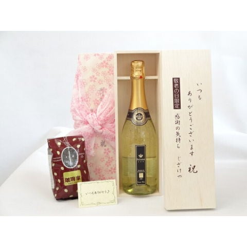 じいじの敬老の日 ギフトセット ワインセット いつもありがとうございます感謝の気持ち木箱セット+オススメ珈琲豆(特注ブレンド200g)( Felistas(フェリスタス)24カラット金箔入りプレミアムスパークワイン750ml(フランス))メッセージカード付
