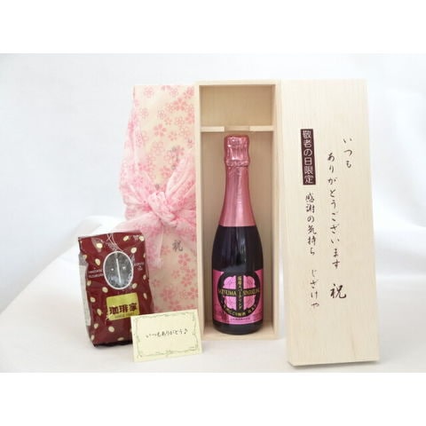 じいじの敬老の日 ギフトセット ワインセット いつもありがとうございます感謝の気持ち木箱セット+オススメ珈琲豆(特注ブレンド200g)( 薩摩スパークリング 梅太夫 375ml(鹿児島県))メッセージカード付