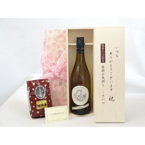 じいじの敬老の日 ギフトセット ワインセット いつもありがとうございます感謝の気持ち木箱セット+オススメ珈琲豆(特注ブレンド200g)( 金賞受賞ワイン クロード・ヴァル 白ワイン(フランス)750ml)メッセージカード付