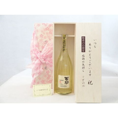 じいじの敬老の日 焼酎セット いつもありがとうございます感謝の気持ち木箱セット( こんな贅沢な余韻を欲しかった麦焼酎 井上酒造 長期貯蔵麦焼酎 百助(ももすけ)720ml (大分県) ) メッセージカード付