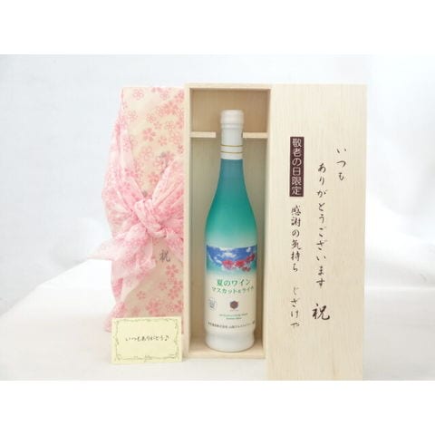 じいじの敬老の日 ワインセット いつもありがとうございます感謝の気持ち木箱セット( 本坊酒造 山梨マルスワイナリー 夏のワイン マスカット&ライチ 7% 500ml(山梨県)) メッセージカード付