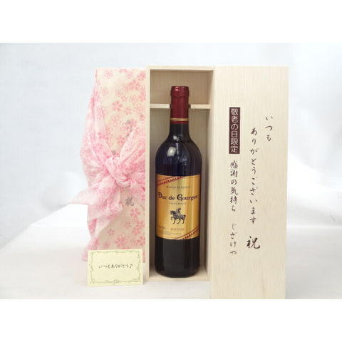じいじの敬老の日 ワインセット いつもありがとうございます感謝の気持ち木箱セット( デュック・ド・グリュグ・ルージュ 赤(フランス) 750ml)メッセージカード付