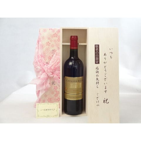 じいじの敬老の日 ワインセット いつもありがとうございます感謝の気持ち木箱セット( キャバリエ ロワイヤル ルージュ 赤(フランス)750ml)メッセージカード付