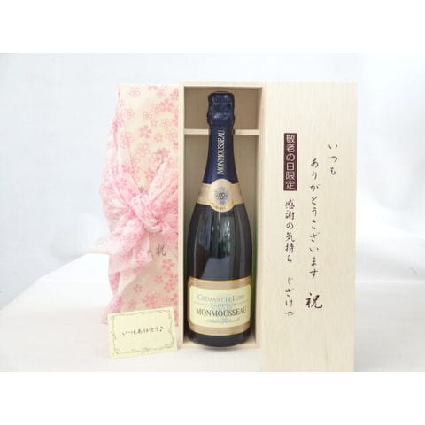 じいじの敬老の日 ワインセット いつもありがとうございます感謝の気持ち木箱セット( モンムソー スパークリングワイン750ml(フランス))メッセージカード付