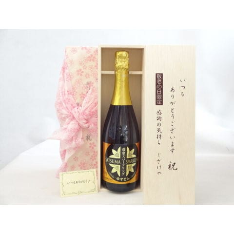 じいじの敬老の日 ワインセット いつもありがとうございます感謝の気持ち木箱セット( 薩摩スパークリング ゆずどん 750ml(鹿児島県))メッセージカード付