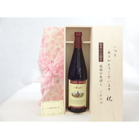じいじの敬老の日 ノンアルコールワインセット いつもありがとうございます感謝の気持ち木箱セット( 脱アルコールワイン赤(カ-ルユングメルロー 750ml ドイツ赤ワイン))メッセージカード付