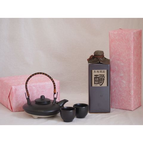 国産美濃焼 黒千代香2合セット2客ツル付(450g)10年貯蔵 米焼酎しょうエクセレンス35°((熊本県) 720ml
