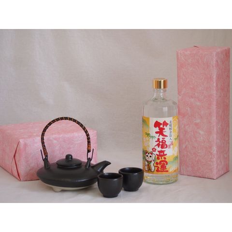 国産美濃焼 黒千代香2合セット2客ツル付(450g)老松酒造 本格麦焼酎 金箔入笑福来運 (大分県) 720ml