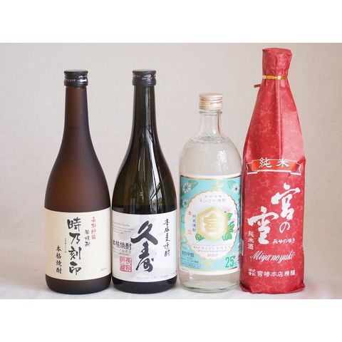 宮崎本店日本酒×焼酎4本セット(キンミヤ焼酎 25度 宮の雪 純米 長期貯蔵米焼酎 時乃刻印 25度 長期貯蔵麦焼酎 久寿 25度) 720ml×4本