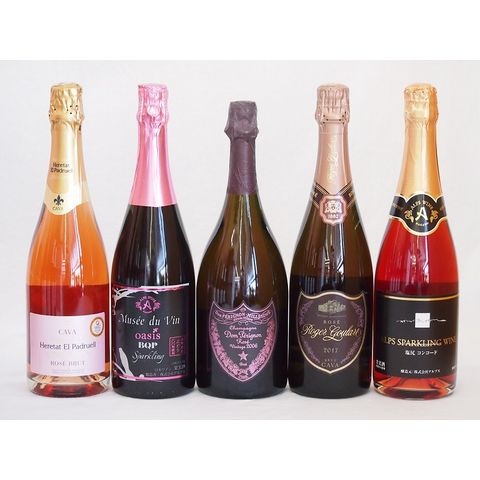 果実味豊かなロゼスパークリングワイン5本セット(塩尻コンコード スパークリングロゼやや甘口 シャンパーニュ製法エレタットロゼ(スペイン) ミュゼドゥヴァン ブラッククイーンピンク辛口 ロジャー グラート カヴァ ロゼ(スペイン) ドン ペリニヨン ロゼ)