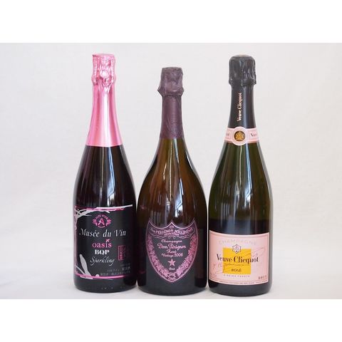 果実味豊かなロゼスパークリングワイン3本セット(ミュゼドゥヴァン ブラッククイーンピンク辛口 ドン ペリニヨン ロゼ ヴーヴ クリコ ロゼ ローズラベル) 750ml×3本
