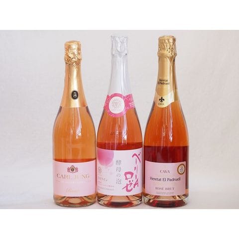 果実味豊かなロゼスパークリングワイン3本セット(シャンパーニュ製法エレタットロゼ(スペイン) ドイツ脱アルコールスパークリングロゼやや辛口 酵母の泡ベーリーAロゼ やや辛口) 750ml×2本 720ml×1本